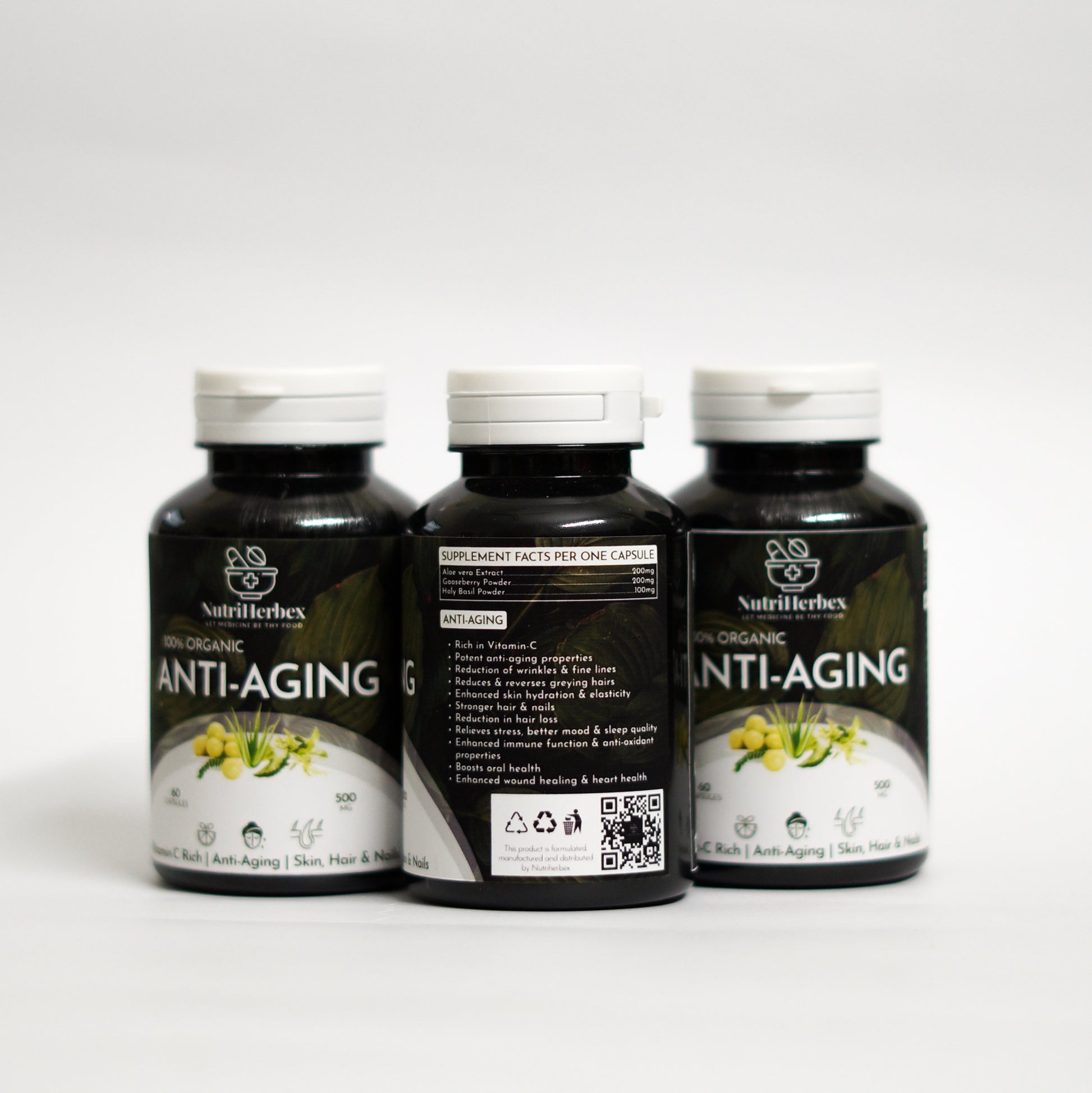Unlock the boundless benefits of our organic bespoke blend of potent herbs today. Elevate your beauty regimen, reduce signs of aging, and enhance the health of your skin, hair, and nails with our premium 100% organic Anti-Aging capsules made to order.