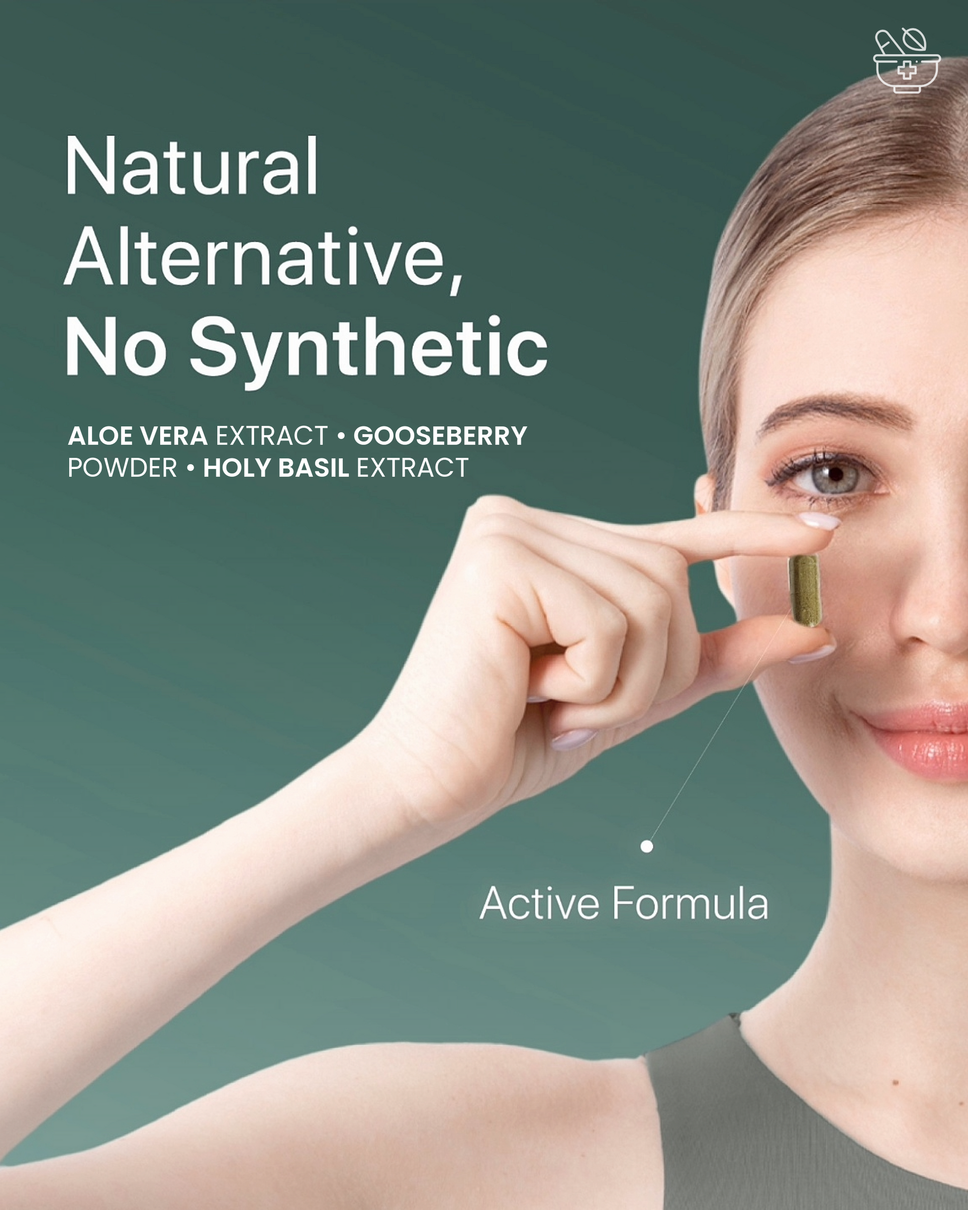 Made with our 100% organic, bespoke, potent & effective blend of Aloe Vera Extract, Gooseberry Powder & Holy Basil Extract - approved and recommended by certified dietitians and dermatologists.