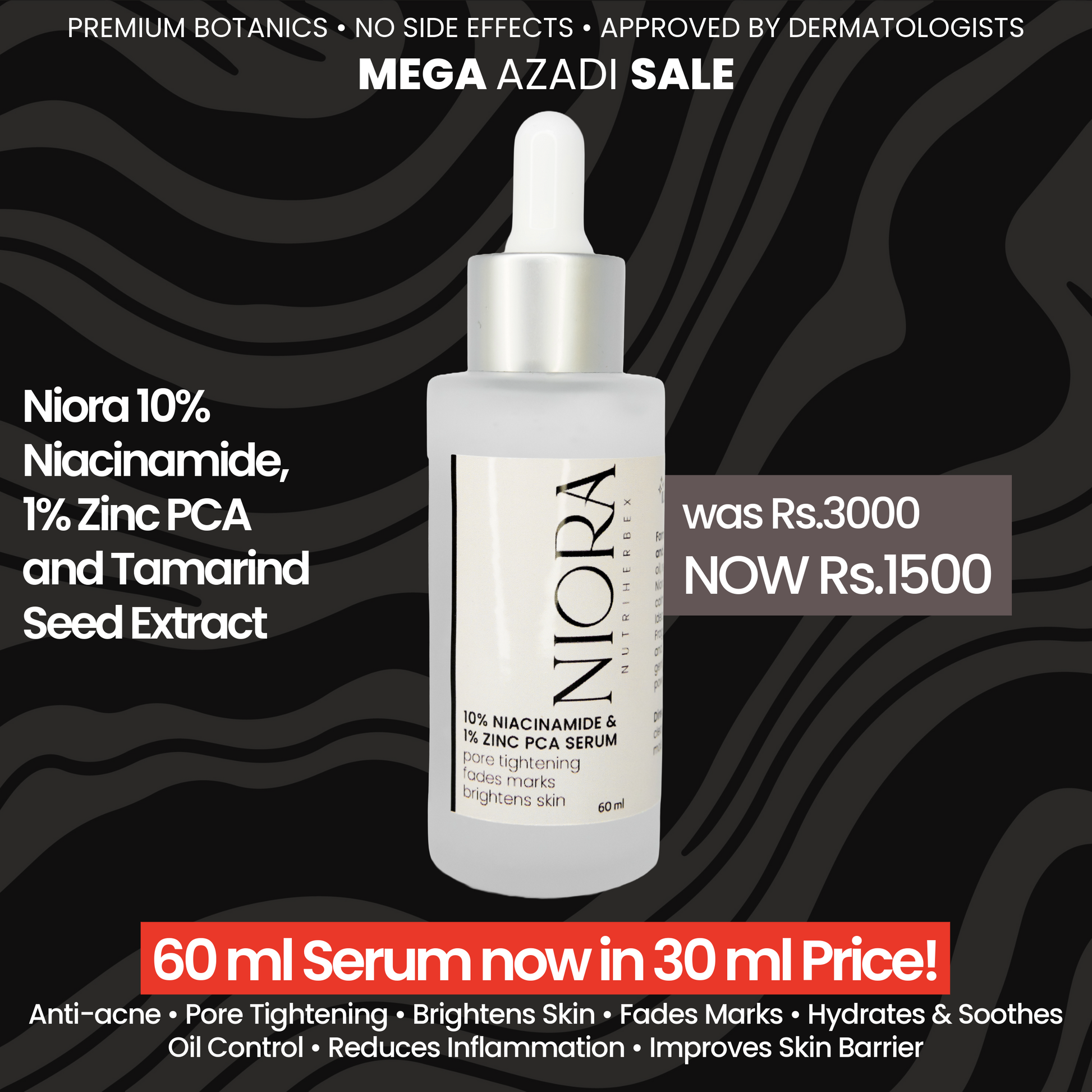 Niora | 60 ml – 10% Niacinamide + 1% Zinc PCA Serum with Tamarind Seed Extract